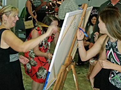 You will be amazed at how enthusiastic everyone is. This is the perfect "Ice breaker" Combining Arts and Entertainment. People love getting to know one another over a paintbrush. With the help of our Live Painter of course! Just like having your own Painting Party.
